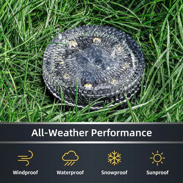 All-Weather Performance - These outdoor solar lights are designed with IP65 waterproofing that exceeds industry standards, able to withstand all harsh weather conditions. The thick glass shade protects the solar panel beneath, which features epoxy resin encapsulation for water and dust resistance. These maintenance-free lights perform reliably in all environments - from garden beds and flower borders to walkways and driveway edges. Perfect for landscape illumination year-round, eliminating the hassle of frequent replacements.