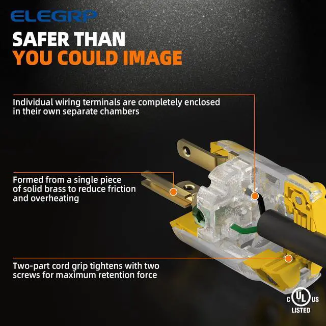 Toughened Construction + Copper Brass Contacts Insulated and solid housing will keep non-current carrying parts from becoming energized and wont crack in high abuse applications. Formed from a single piece of solid brass to reduce friction and overheating, providing excellent conductivity.