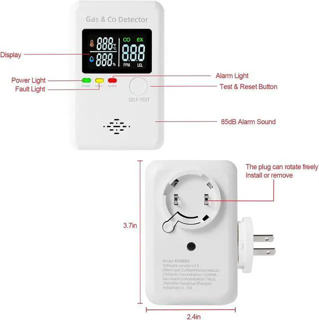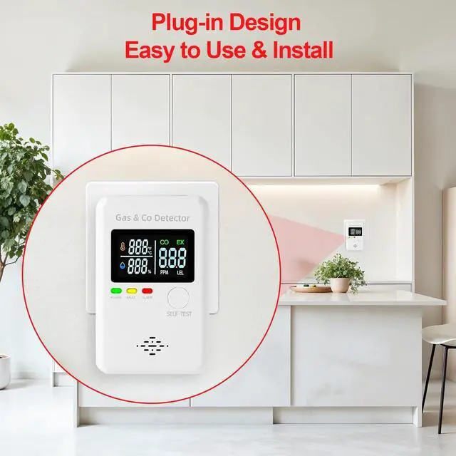 4-in-1 combination gas and carbon monoxide detector suitable for home, apartment, RV, hotel, kitchen, and cruise ship cabin