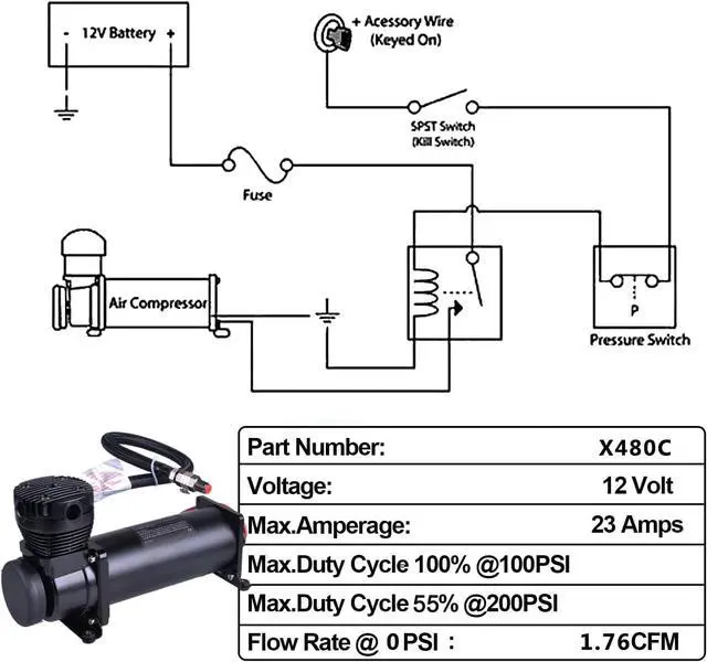 High Flow Output: The heavy duty air train horn compressor delivers a flow rate of 1.76 CFM even with no differential pressure (0 PSI), ensuring excellent efficiency and fast response times. Suitable for car horns/pneumatic suspension systems/pneumatic tools/car tires/motorcycle tires