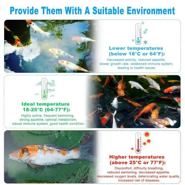Mind: The thermometer is equipped with precise temperature monitoring functions to ensure accurate and reliable operation in heating or cooling modes. Whether in the cold winter or the hot summer, you can confidently adjust the pond water temperature to create the most suitable living environment for the fish.