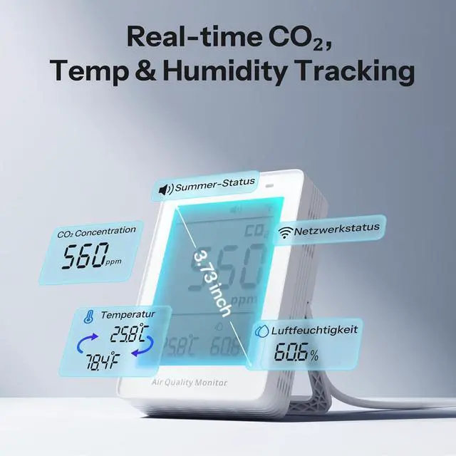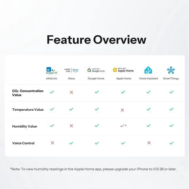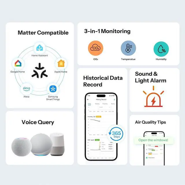 [Integrate with Voice Assistants for Voice Control] You can check your CO2 levels using simple voice commands through Siri or Google Assistant.