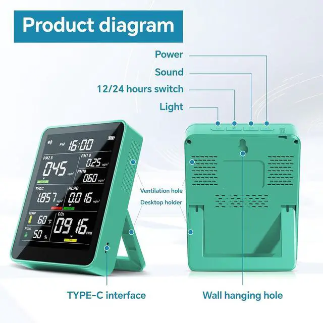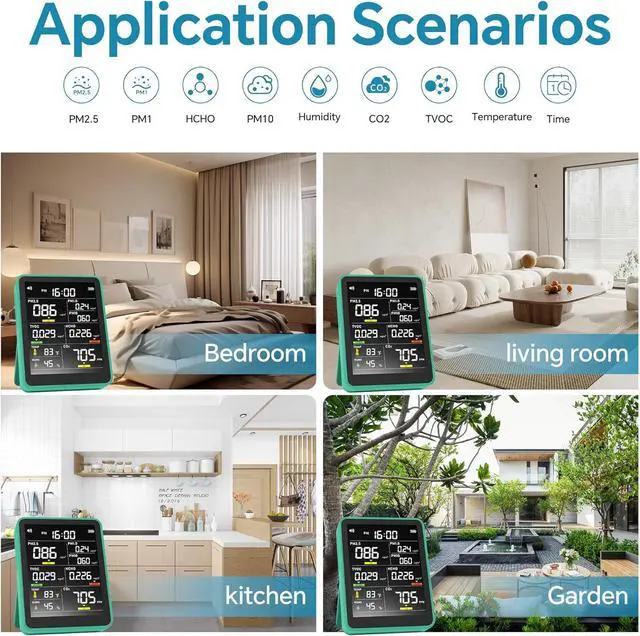Enjoy The Health Benefits: Air quality monitor indoor use helps people take better care of the atmosphere around them, leading to improved focus, mood, and overall well-being. Please feel free to reach us if you have any questions about your purchase. We will solve your problem within 24 hours.