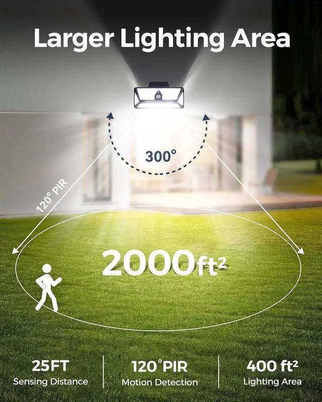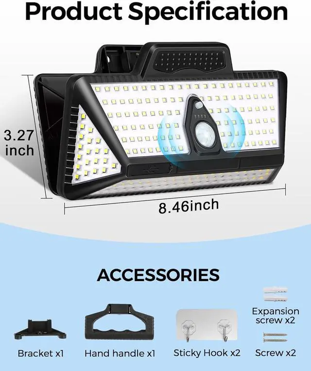 Weather ResistanceCrafted from high-strength ABS+PC material with IP65 waterproof rating, these solar motion lights outdoor are built to endure rain, snow, and other harsh weather conditions