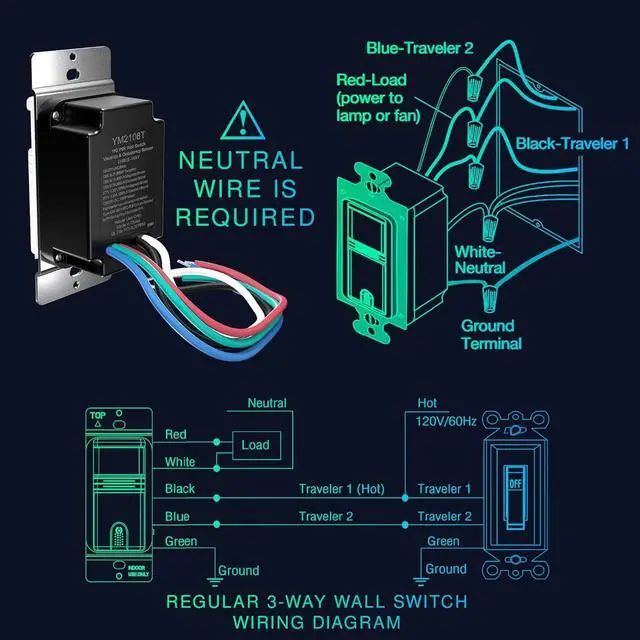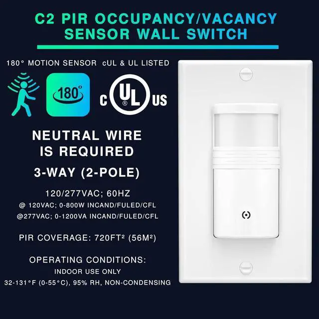 Fully Certified and Compliant: UL Certified, FCC Listed and California Title 24 Compliant; Includes 2 in-wall 3 way light switch motion sensor. Installation of this 3-way motion sensor light switch requires a neutral wire, all necessary wires included