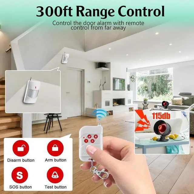 Loud SOS alarm and easy to get help-children and seniors at home in emergency, press the S button of the remote controller, which will trigger the siren alarm up to 115db to notice neighbors or other families in home so that they will get help in time.