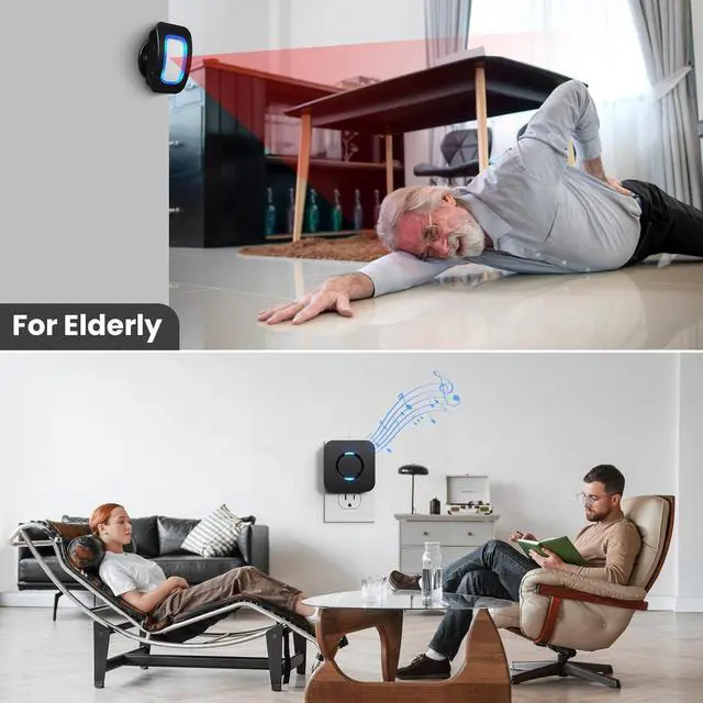 EASY TO INSTALL The sensor is mounted and works with two AAA batteries (included) and the receiver plugs into a standard outlet. Our doorbell motion detector security sensor can detect motion up to 110 degrees