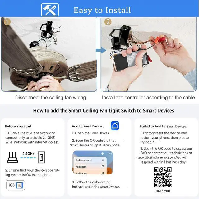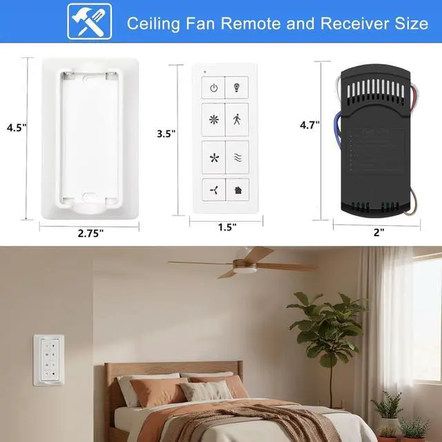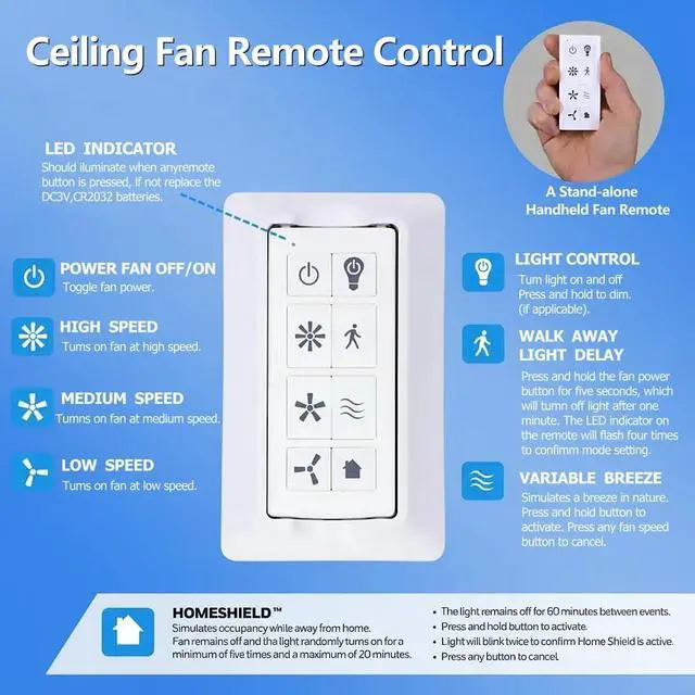 Quick & Easy InstallationThe portable fan remote can be detached from its wall bracket, giving you the freedom to control your comfort from anywhere in the room. The smart ceiling fan remote control kit comes pre-configured; simply sync it by pressing the 'LEARN' button and installing two 3V batteries (not included). You can be up and running in minutes, not hours.