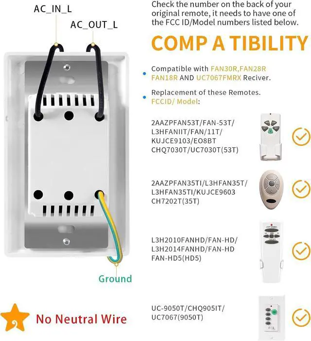 Universal Ceiling Fan Remote Control, Ceiling Fan Wall Switch UC9050T, UC9050T Ceiling Fan Wall Remote Control Compatible with Hampton Bay Harbor Breeze 2 Pack