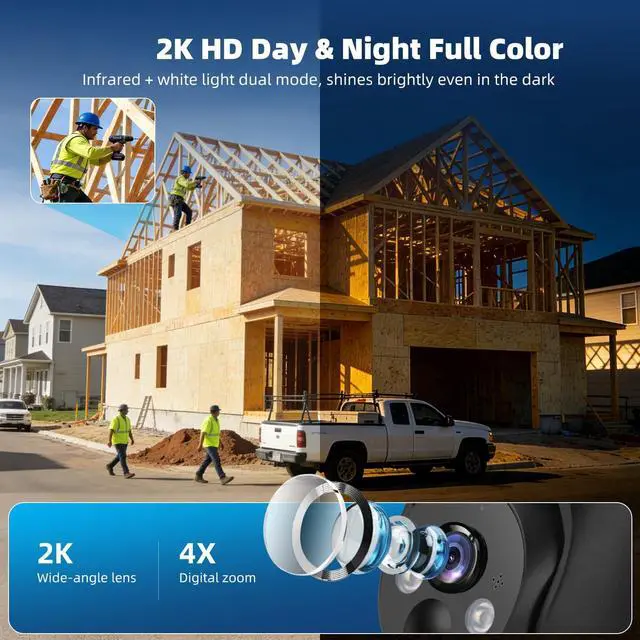 2K Color Night Vision & 360° Wide View This job site camera offers a 360° wide view and 4X digital zoom. You can remotely pan 355° and tilt 100° via the UBox App, which increases the flexibility of the 360 camera to get the broadest view without blind spots. By adopting color 2K HD night vision mode, the non wifi security camera could capture colorful footage up to 65ft. Even in the dark, the full-color night vision lets you always keep an eye on your assets. Do not support auto-tracking