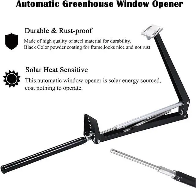 BATTERY-FREE SOLUTION: This automatic window opener requires no tools - simply attach it to your greenhouse vent frame and and doesn't rely on batteries or electricity for operation. No additional power source is needed, saving you money and reducing environmental impact.