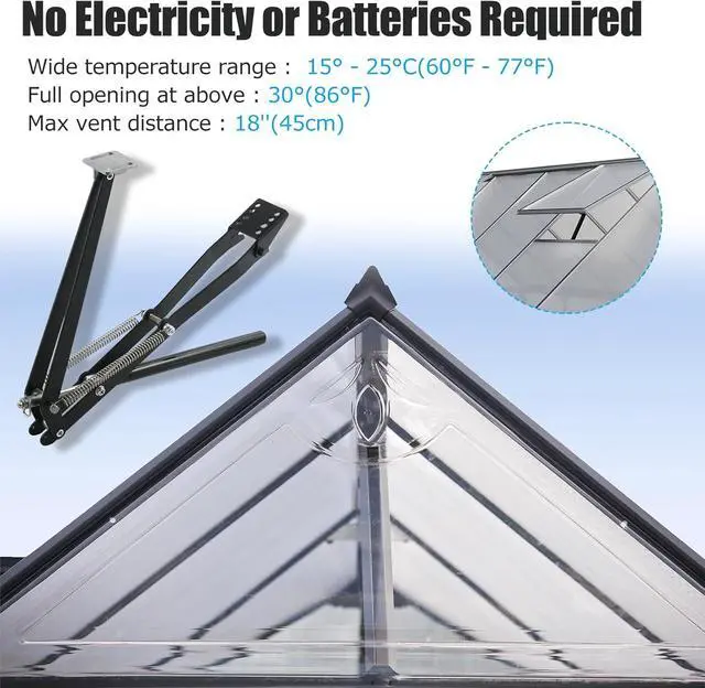 Reliable Helper: Crafted from iron and stainless steel, this window opener guarantees long-lasting performance. Auto vent opener can withstand the demands of greenhouse environments, ensuring it remains your trusted gardening companion for years