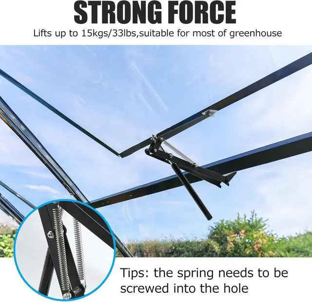Easy Installation and Compatibility: Installing the greenhouse vent opener is quick and straightforward with the provided clamps and screws. It fits most greenhouse windows and seamlessly integrates with roof vents for houses, making it a versatile choice for different setups