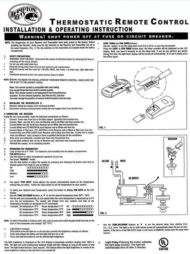 The Universal Up/Down Light Ceiling Fan Kit (PN#: RR7078TUDLKIT) allow for easily converting your fan with up and down lights to work wirelessly with a remote control from anywhere in the house. The Universal Up/Down Light Ceiling Fan Kit can be installed in any fan at the base of the ceiling where the wires from the house connect the wires of the fan. Once installed, this kit will operate Fan speed OFF, LOW, MED, HIGH, up light ON/OFF & down light ON/OFF. This kit comes with a 1-Year replacement warranty.