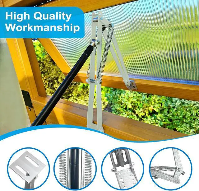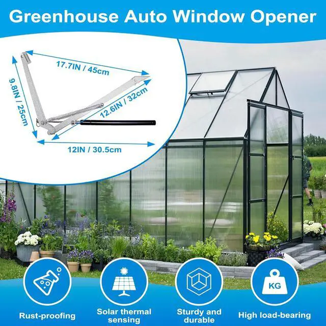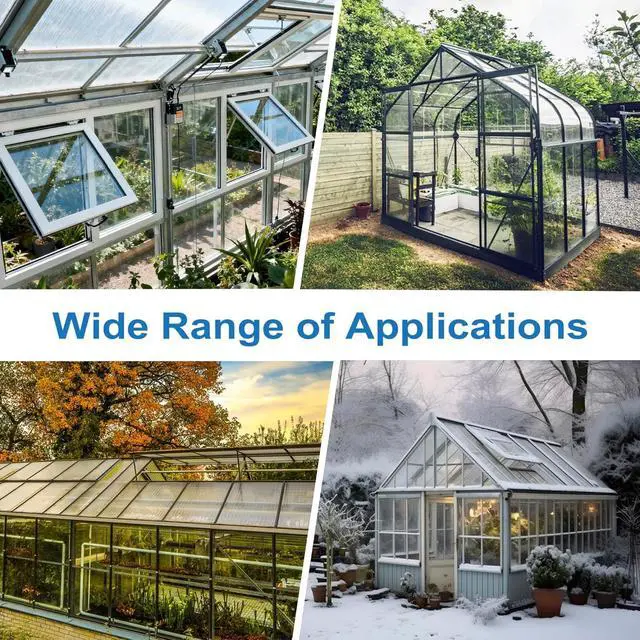 Adjust Indoor Ventilation Conditions: Greenhouse window opener kit, maximum window opening is about 45cm / 17.72 inches. The window opening time can be manually adjusted to control the temperature. Solar automatic window opener through temperature management to optimize plant health.