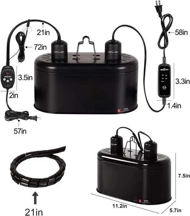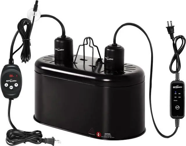 Space SavingReptile light fixture with dimming thermostat and timer, integrated design minimizes the number of devices used, reduces clutter and saves space. The reptile fixture is ETL certified, apply E26 ceramics lamp cap, can bear Max 150W.