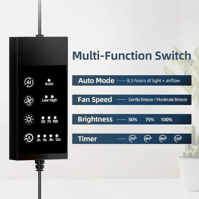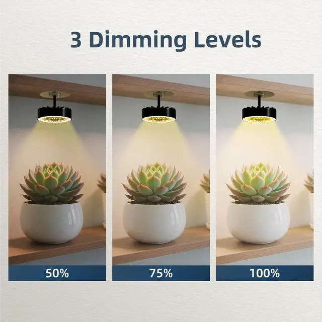 Adjustable Growth Control: The grow lights for indoor plants offer three brightness levels (50%/75%/100%) and a timer function with 2/4/8/12-hour settings, precisely meeting the lighting needs for seedling cultivation, flowering, and fruiting stages of plants and vegetables like tomatoes