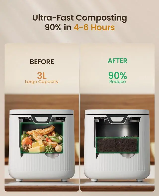 Self-Cleaning for Easy Maintenance: The convenient self-cleaning mode makes maintenance a breeze, ensuring composter indoor electric stays clean with minimal effort.