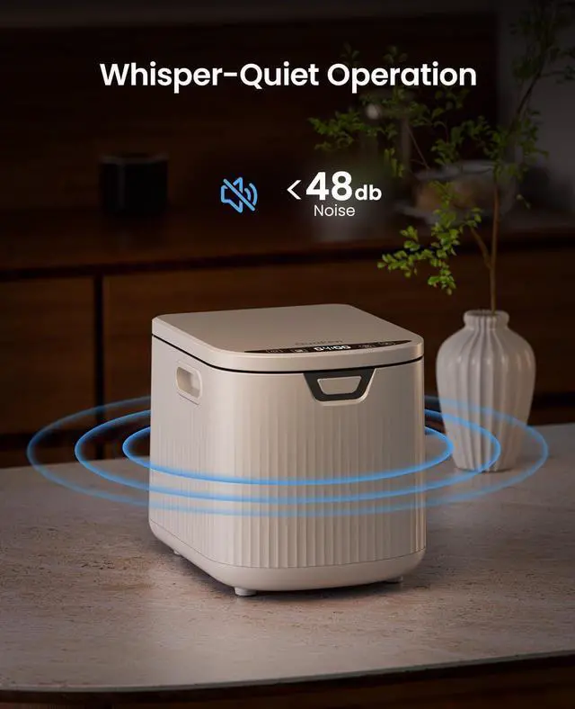 Odor-Free & Quiet Operation: Equipped with dual filters, this food recycler composter effectively eliminates unpleasant smells and operates quietly, keeping your kitchen fresh and peaceful.