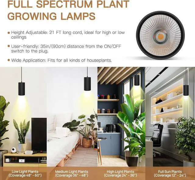Install Pendant Light: 21FT height adjustable long enough power cord, you can easily use this hanging grow light for your favorite houseplants, no worry about additional extendable cord. Just simply screw the two cable fixtures (included in the package) to the wall or ceiling, 5 minutes to complete the installation, without paying an electrician.