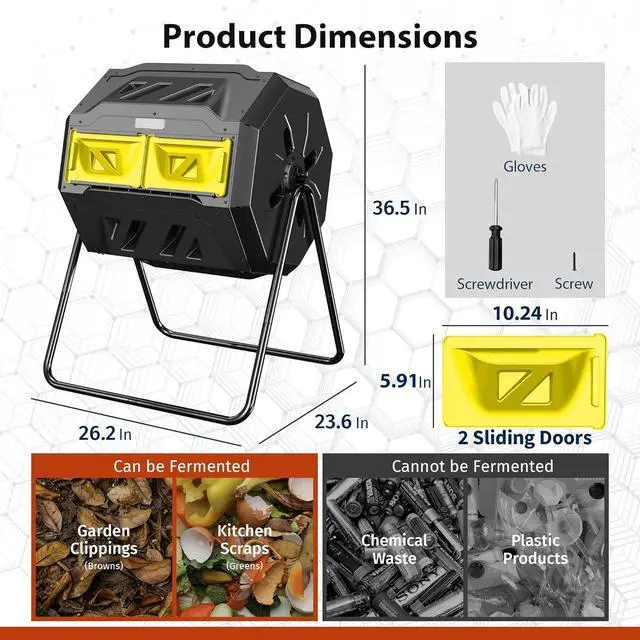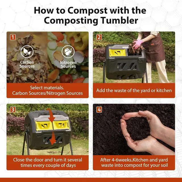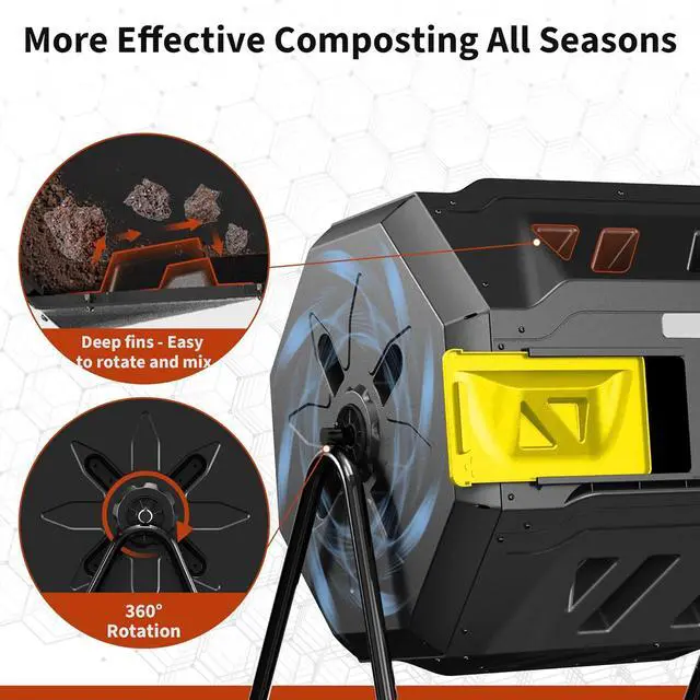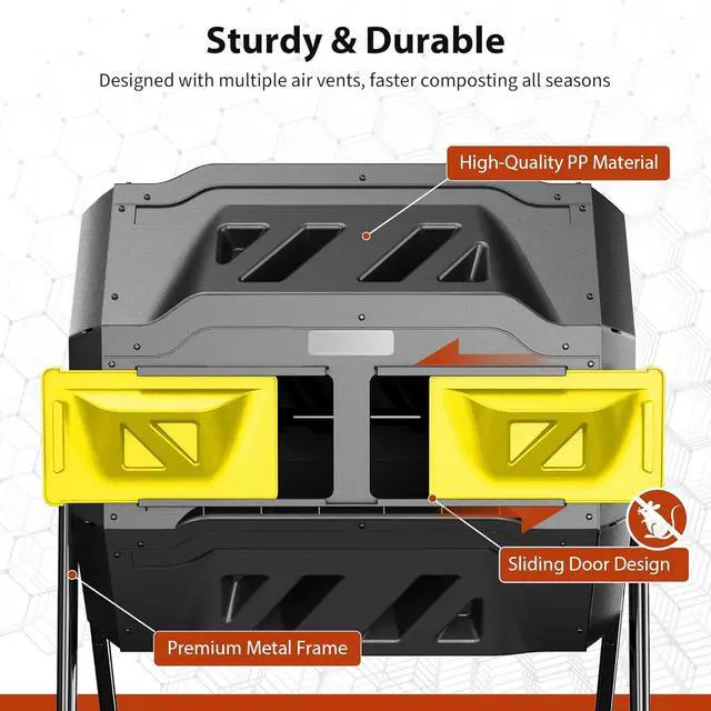 Weather-Resistant Construction: Built with a high-quality, BPA-free plastic body and a sturdy steel frame, this compost bin is both weather-resistant and durable. Its designed to withstand the elements, ensuring long-lasting use year after year, even in harsh outdoor conditions