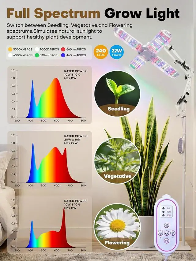 Easy Setup: The decorative plant light can not only be used as a grow light floor lamp, but also it can work as a grow light desk lamp. Its stylish design fits right into your home or office, just functional lighting wherever indoor plants grow.