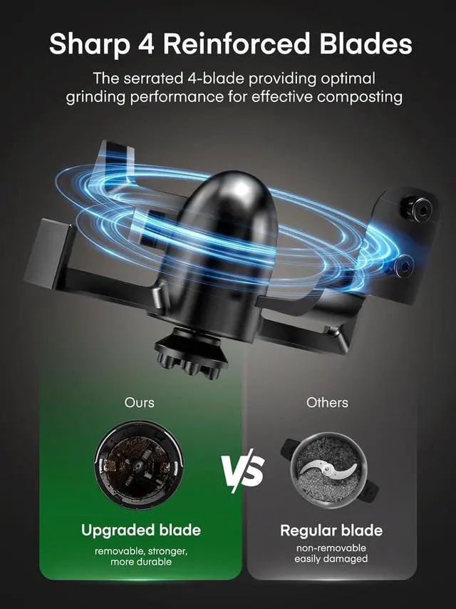 Whisper-Quiet & Energy-SavingEquipped with low-speed, high-torque blades, this compost machine effortlessly processes food materials like chicken bones, while generating little to no noise, allowing you to run cycles at night. Whether you want to reduce your carbon footprint or are looking for sustainable gifts for family and friends, 's electric compost bin is an ideal choice!