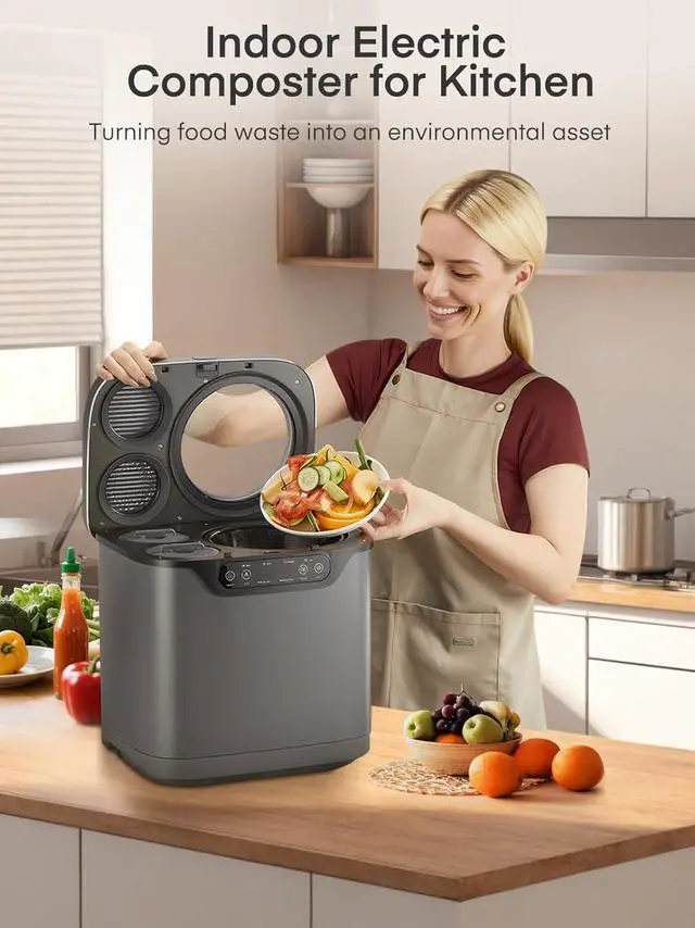Experience Odor-Free Indoor CompostingThe built-in activated carbon filter in the food waste composter ensures 100% odor adsorption, and the sealed design further blocks the odor from escaping, keeping your kitchen fresh and clean - ideal for apartments and open kitchens. It is recommended to replace the activated carbon every 3 months to ensure continuous odor-free performance.