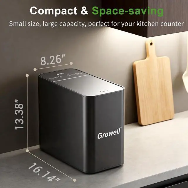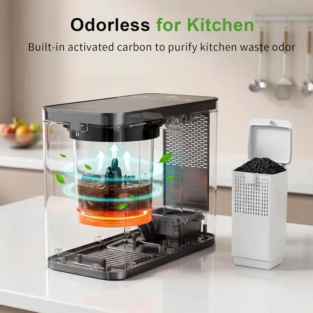 Odor-Free Composter for Indoor Use: This compost bin features large-capacity carbon box and fully sealed design, which effectively absorbs and filters odors generated by food waste, preventing leakage. Activate Storage mode (12 or 24 hours) for continuous air circulation, keeping scraps and dried waste fresh, indoor air fresh. The composter alerts you when the filter hits 300 hours of use, ensuring continued odor-free performance. (Activated