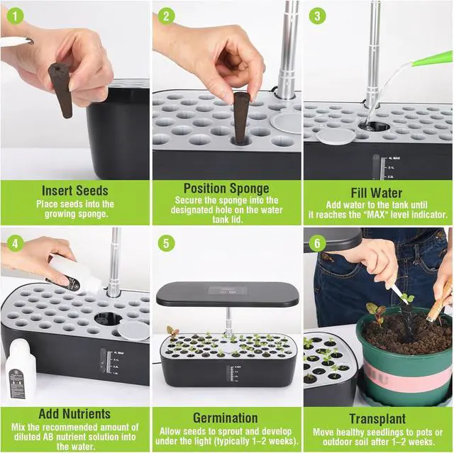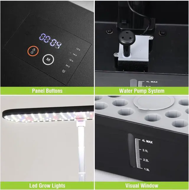 Smart Display & Timer Function: Equipped with a built-in digital clock and timer function, this hydroponic system lets you easily monitor the time and schedule light or pump cycles with precision. Perfect for busy lifestyles, it ensures your plants receive consistent careeven when you're not home.