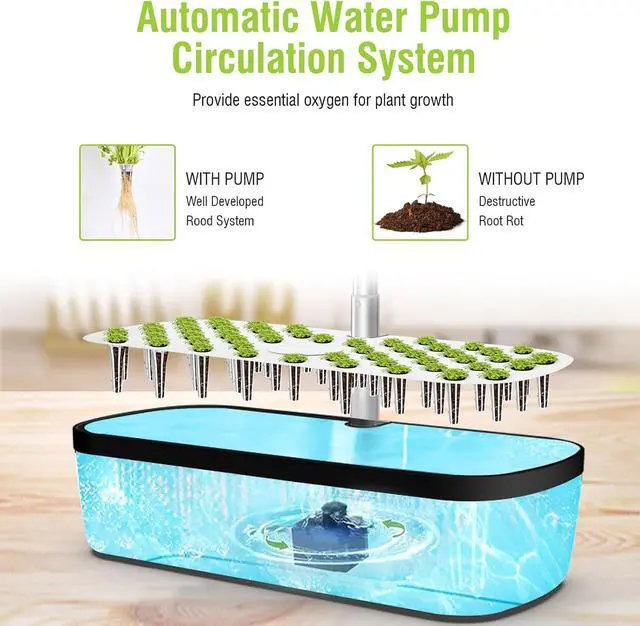Ultra-Quiet Water Circulation with Sleep Mode: Designed with a whisper-quiet water pump and sleep mode for night-time use, the system runs at low decibels to ensure peaceful operation even in bedrooms. Built-in circulation ensures clean and oxygen-rich water for healthier plants.