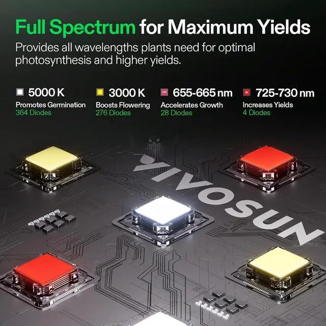 IP65 Waterproof & Dustproof: This LED grow light is built for high-temperature and high-humidity environments; Safe to spray water, nutrients, or cleaners without worrying about damage or reduced lifespan