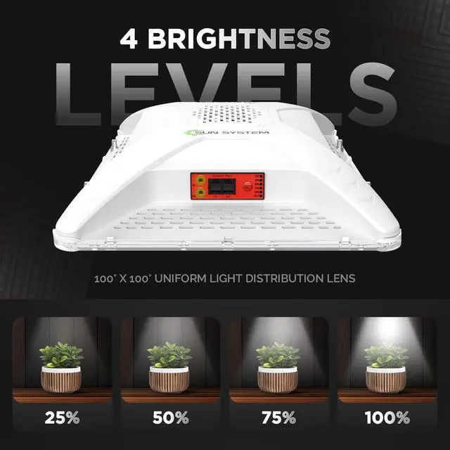 Designed for serious growers, the HelioGrow LED Grow Light delivers exceptional performance, durability, and control for indoor gardens and hydroponic setups of any scale. Packed with 1, 084 premium diodes, this full-spectrum fixture provides powerful, sun-like light across all stages of plant growthfrom seedling to bloomwhile its corrosion-resistant lens cover ensures long-lasting protection in high-humidity environments. Built for demanding indoor conditions, HelioGrow comes with a 2-year warranty for peace of mind. Engineered for efficiency, the HelioGrows high-density LED layout produces a uniform PPFD to maximize photosynthesis, covering a 4x4 area in vegetative stage and 3x3 during flowering, powered by top-tier chips that deliver high light output with minimal energy consumption. Customize your grow light output with the integrated dimmable controller, offering four easy-to-use brightness levels to match the needs of your plants as they develop. The included adjustable mounting hardware gives you even greater flexibility in positioning and light intensity.