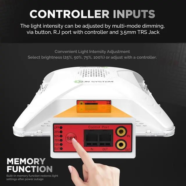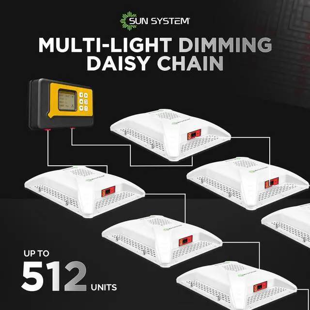 Lighting Controller and Daisy Chain Compatible: Built to scale with your needs, and integrate into any setup, this fixture is compatible with most standard RJ12 controllers for external brightness and timing control. Daisy-chain up to 512 units for an efficient network of grow lights. Great for all size setups from small to large-scale