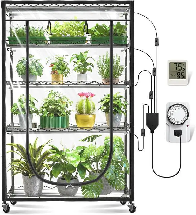Easy to Assemble- The mini greenhouse plant stand requires no tools for quick assembly and disassembly. It features lockable casters for easy mobility and secure placement wherever needed.