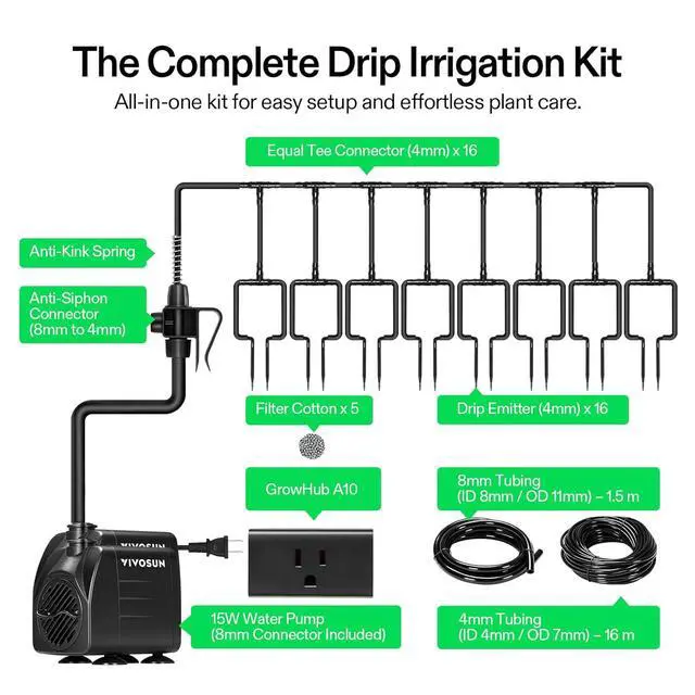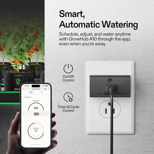 App-Controlled Smart Watering: Connect to the A10 GrowHub and app to water plants from your phone; Set custom schedules in minutes, choose Cycle Mode for automatic intervals, or Recipe Mode for precise daily timing and amount even when youre on vacation or at work