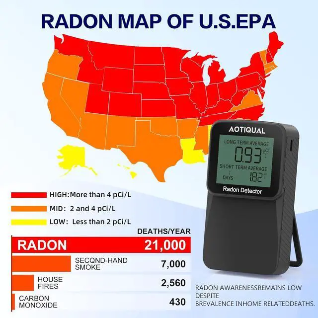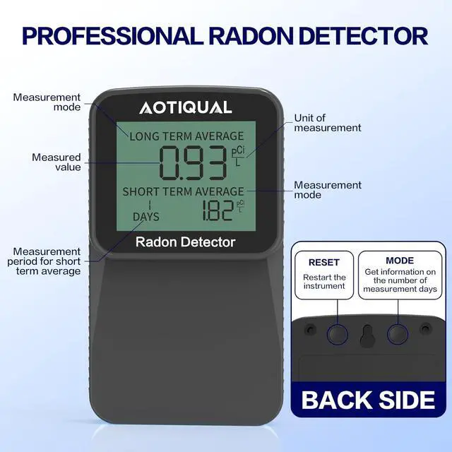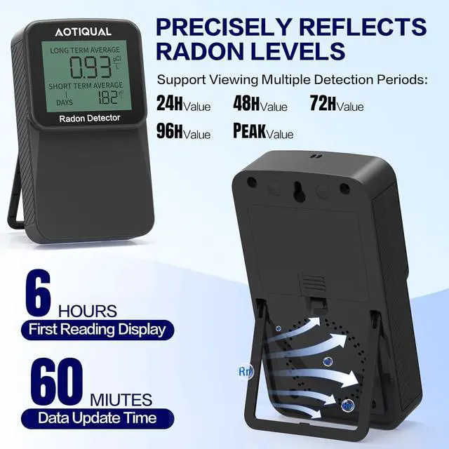 User-friendly Display: Featuring a clear LCD display, this radon detector allows for easy reading and interpretation of radon levels, making it ideal for homeowners and professionals alike.