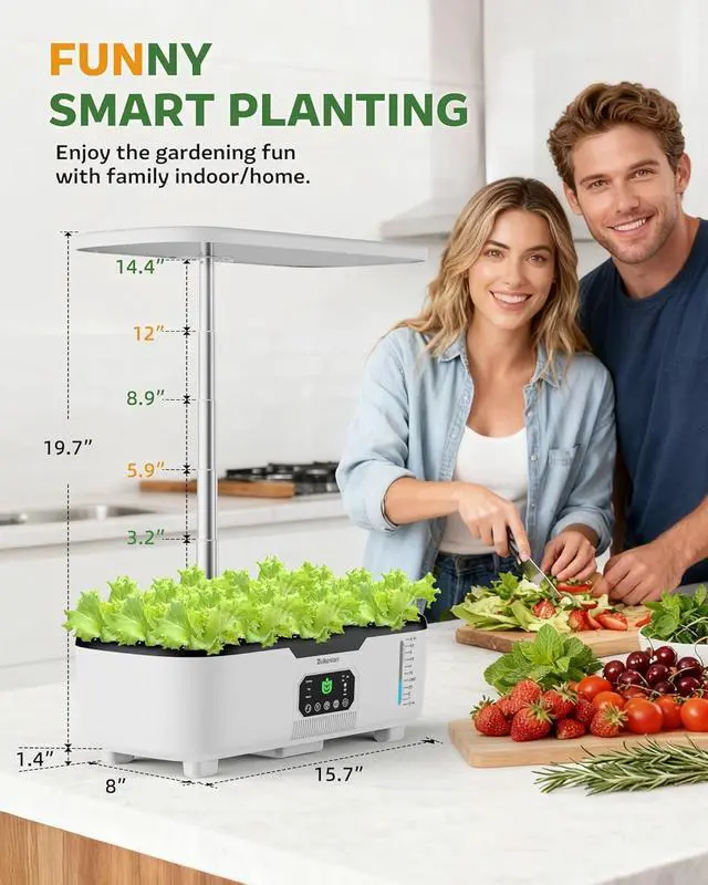 • LCD Touch Panel&Gardening GiftsOur indoor herb garden features LCD touchscreen for one-touch control,herb garden built-in ultra-quiet water pump runsefficient and quiet keeping the water fresh without disturbing your peace. Maximum energy savings. Easy harvest of fresh fruits making healthy eating accessible even for beginners or busy urban dwellers.The kitchen herb garden is perfect for gardeners/beginners/women/men/mom/dad/family/friends as birthday gifts,Valentine's Day gifts, retirement gifts,housewarming gifts,Mother's Day gifts,etc.