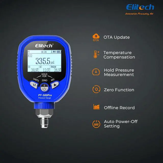 TEMP COMPENSATED LEAK TEST Features a specialized Holding Pressure Mode for leak testing. The built-in sensor monitors ambient temperature changes and automatically compensates the pressure readings. This advanced function differentiates genuine leaks from pressure fluctuations caused by temperature shifts.