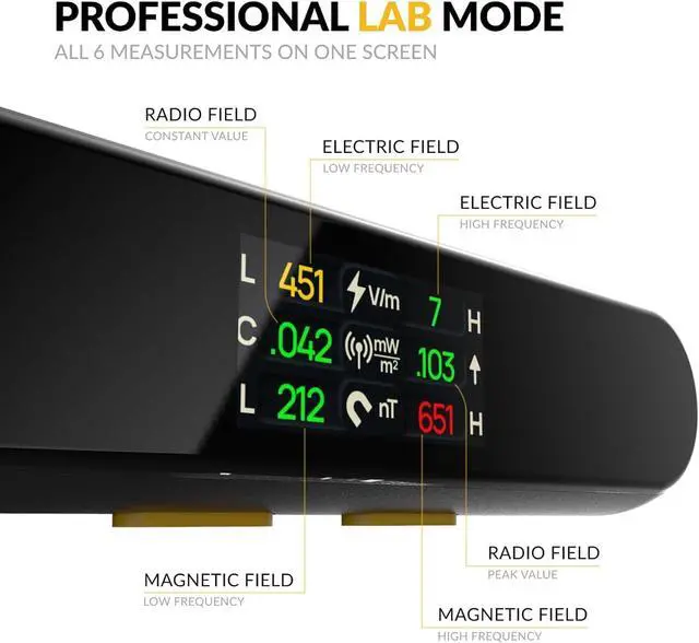 EASY TO USE: Perfect for Family and Professionals, the HiRange emf measuring device is perfect for the family, and includes special LAB MODE option for accessing advanced features for professional users. The easy one-button operation makes the HiRange accessible for anyone looking to take control over their EMF exposure for better health. The meter displays radiation levels from common household sources, allowing you to identify problem areas and make changes.