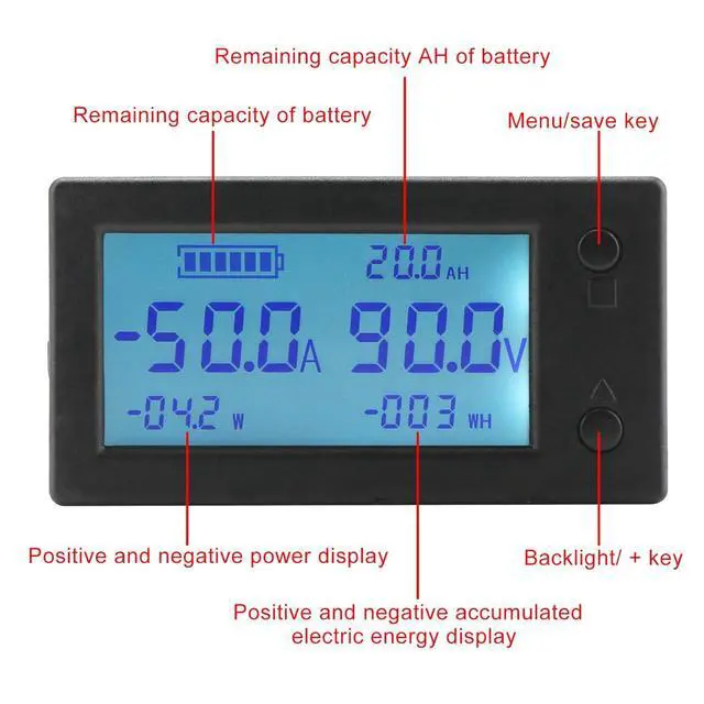 Wide Applications ---- Can be used as dc amp meter, digital volt meter, power meter, battery capacity monitor. Suitable for all kinds of batteries, such as Lead-acid batteries, Lithium Polymer batteries, lithium iron phosphate batteries and etc. With function of storing data when power down, using this meter, no need to worry that your electric data will be lost.