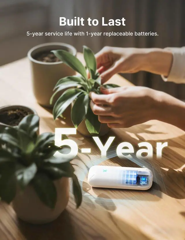 Up to 1-Year Battery Life: Designed for a 5-year lifespan, the device uses 1200mAh replaceable AAA batteries that can last up to one year, with low-battery alerts sent to your app
