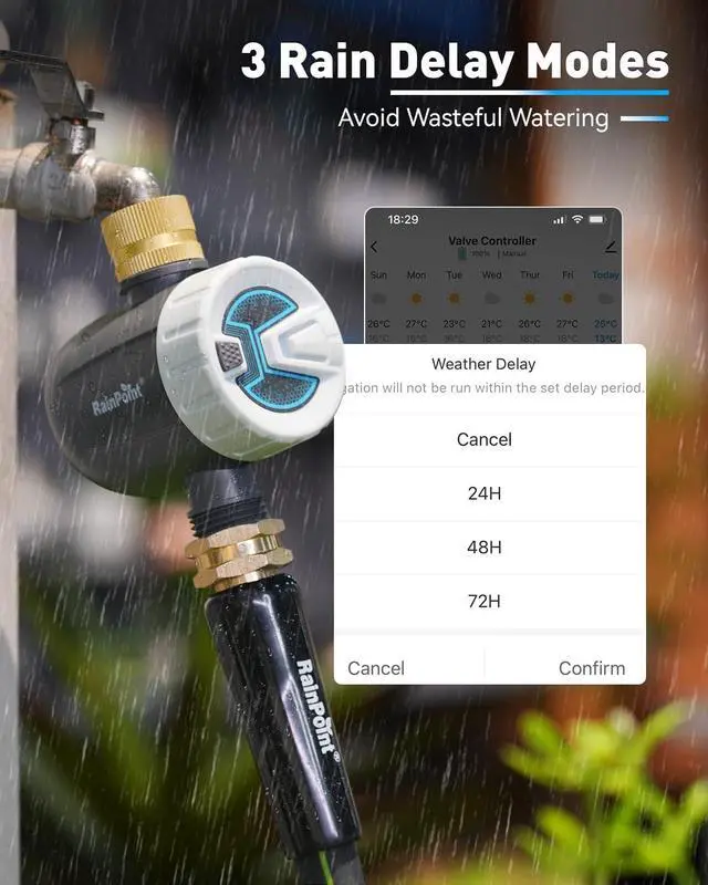 Hands Free Voice ControlManage your wifi hose timer for garden hose from anywhere via your smartphone, it integrates perfectly with Alexa and Google Assistant. Whether you need for a quick soak or scheduled irrigation, total control is just a voice command away.