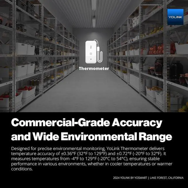 Commercial-Grade Accuracy and Wide Environmental Range: Designed for precise environmental monitoring, Thermometer delivers temperature accuracy of ± 0.36 °F (32°F to 129°F) and ± 0.72 °F (-20°F to 32°F). It measures temperatures from -4°F to 129°F (-20°C to 54°C), ensuring stable performance in various environments, whether in cooler temperatures or warmer conditions.