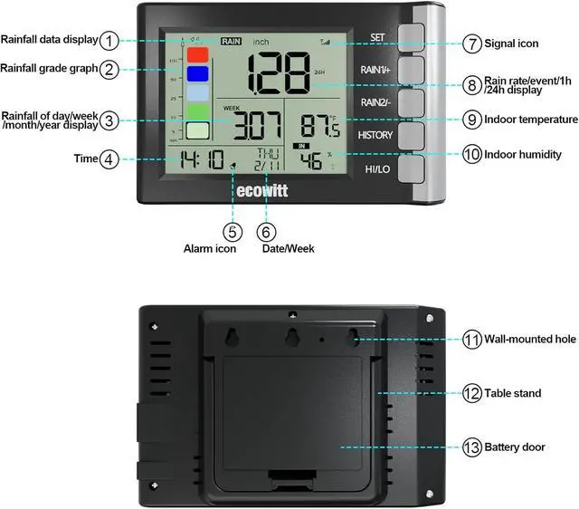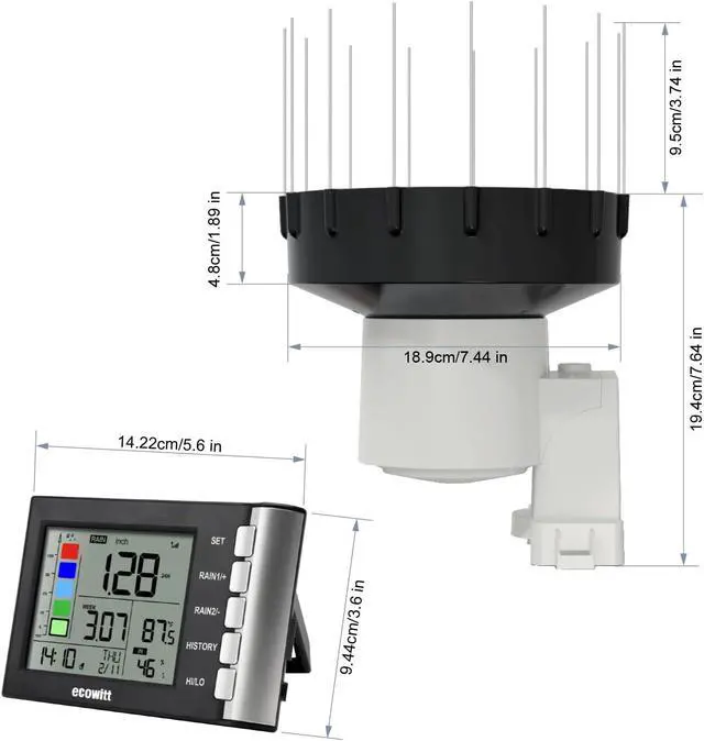 WH5360H Rain Gauge, Includes WH40H Rain Collector Sensor and Indoor Display Console, with Bird Spikes, 915 MHz