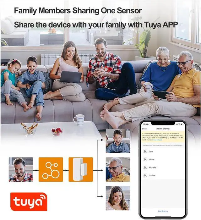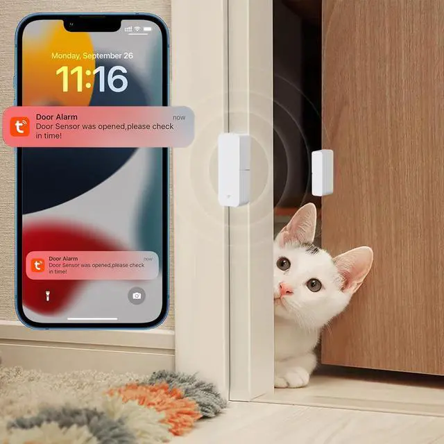 Google home: It can also perform auto control together with other smart devices that are compatible with Smart life. The sensor door needs two AA batteries (not include). When the battery level is low, it will automatically push messages through APP to remind you to change the battery, never worry about running out of battery