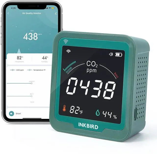 RECHARGEABLE & WALL AMOUNTPpm CO2 detector has a built-in 2400mAh capacity rechargeable battery. You can hang the indoor CO2 monitor to the wall for easy viewing, also you can place the CO2 air quality monitor on your office or living room desk.