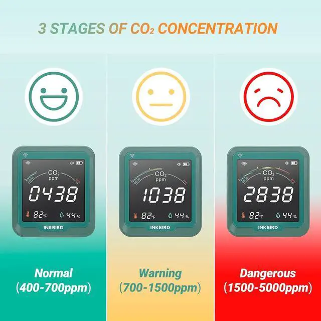 ALARM SYSTEM Wifi CO2 detector is designed with three concentration levels: normal (400-700 ppm), warning (700-1500 ppm), and danger (1500-5000 ppm). It will automatically sound an alarm once the CO2 concentration exceeds 1500 ppm, and you can also set different alarm ranges as needed. You will receive an immediate alarm if the carbon dioxide concentration exceeds the preset range.