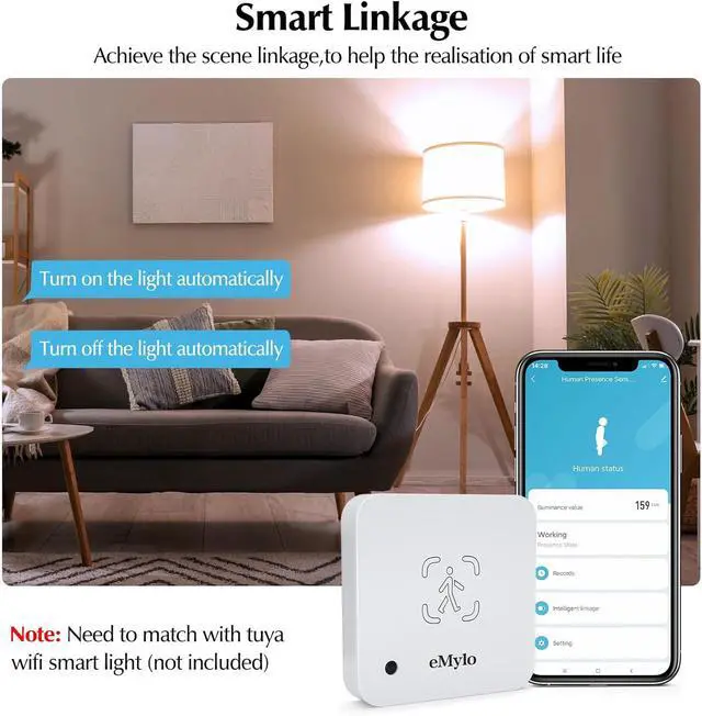 Scene Linkage: Use Smart Life App/TUYA to create favourite scene program, when detecting movement in the set scene, it will trigger the corresponding task, such as "someone passes by" "tuya smart light turn on automatically", when you come home, WiFi presence sensor senses the movement and the light turn on automatically, to achieve the scene linkage, to help the realisation of smart life.