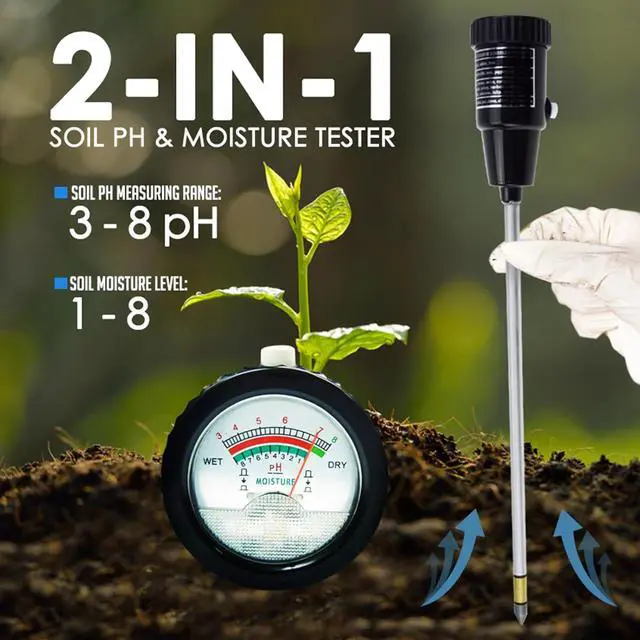 Accurate pH and Moisture Measurement: Achieve optimum results with this pH and moisture meter; It provides accurate and reliable readings to determine the pH levels and moisture content of different types of soil